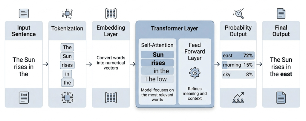 👉 Unlike earlier models that processed text sequentially, Transformers analyze the entire context at once—making them significantly more powerful for understanding language.