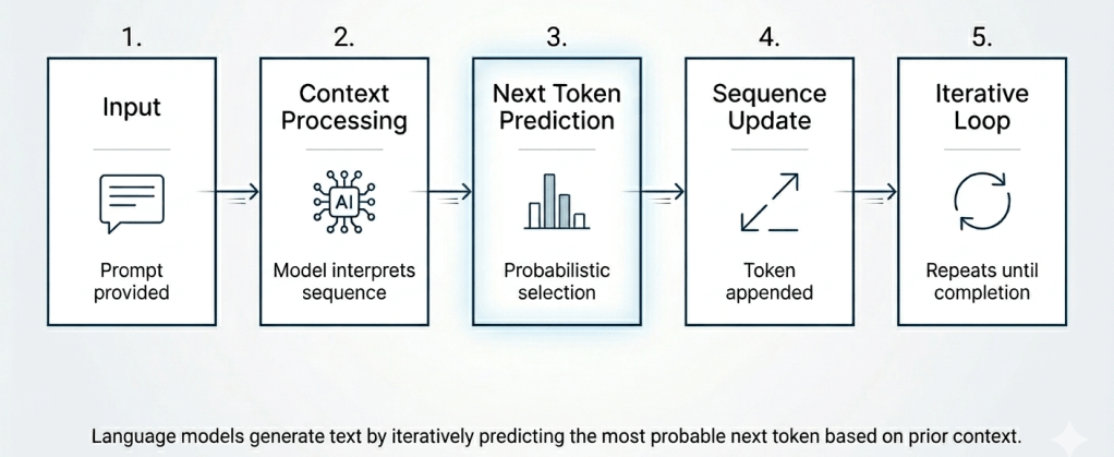 In simple terms, the model predicts each token based on all the tokens that came before it. This step-by-step prediction process is the core mechanism behind autoregressive text generation.